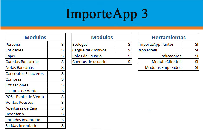 Este plan está dirigido a pequeñas empresa o negocios, donde el número de personas que pueden interactuar con el sistema no supera los 2 usuarios. Sin dejar de lado el control de ciertos procesos como compras, inventarios, seguridad etc. y la importancia central de su propietario (s) se centra en tener un control de las ventas que se efectúan diariamente. Es de anotar que si en algún momento se necesita agregar más características funcionales de ImporteApp se pueden realizar de forma individual o haciendo un cambio del plan dependiendo del crecimiento de su empresa o negocio y que se puedan amoldar a nuevas necesidades que usted requiera.